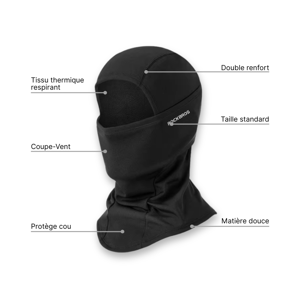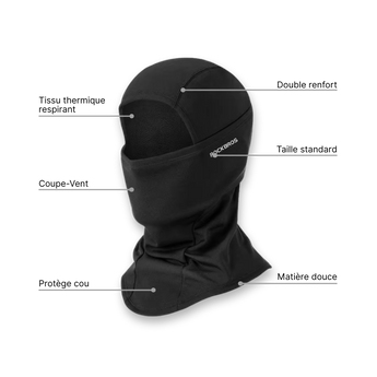 Design extra-long protégeant oreilles, cou et partie basse du visage. Matière coupe-vent imperméable.