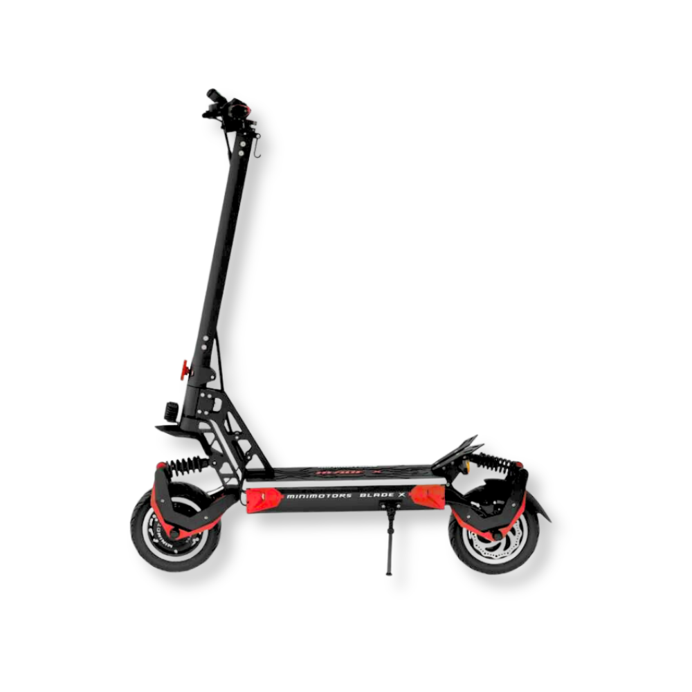 La trottinette électrique Dualtron Blade X est une trottinette électrique haut de gamme destinée aux amateurs de vitesse et de confort. Minimotors l'a équipée de deux moteurs puissants délivrant 4000W au total. Elle dispose également d’une batterie de longue durée et d’équipements de sécurité avancés pour vous accompagner dans vos trajets quotidiens. Elle est également polyvalente et peut être utilisée à la fois en ville et à la campagne, notamment lors de vos aventures en dehors des sentiers battus.