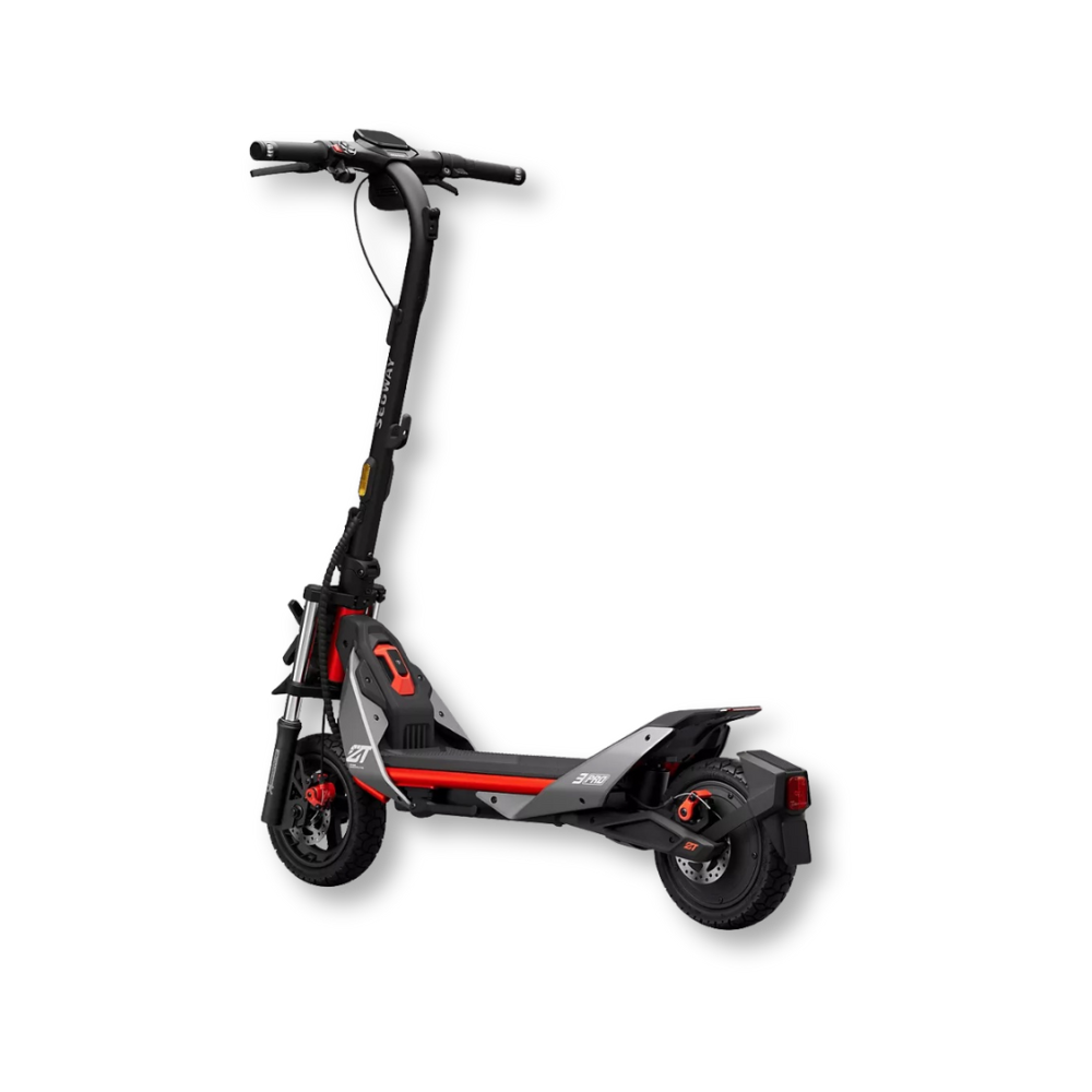 Segway ZT3 Pro E : La Trottinette electrique Tout-Terrain Par Excellence Trottinette electrique NINEBOT ZT3 ProPerformance et Autonomie pour l'Aventure Urbaine et Tout-Terrain La Segway ZT3 Pro E s'impose comme la compagne ideale pour les amateurs d'aventure urbaine et de sensations fortes en tout-terrain. Avec son moteur sans balai d'une puissance maximale de 1600 W, elle gravit aisement des pentes de 25 %. La technologie RideyLong™ garantit une autonomie remarquable de jusqu'à 70 km, permettant des escapades prolongees sans souci d'autonomie. Les pneus tout-terrain tubeless de 11 pouces offrent une adherence superieure, tandis que les doubles suspensions telescopiques à l'avant et à ressorts à l'arrière absorbent les irregularites pour une conduite fluide et confortable. Trottinette electrique NINEBOT ZT3 ProSecurite et Confort Connectes pour une Experience de Conduite Optimale La securite est au coeur de la conception de la ZT3 Pro E, avec un double système de freinage à disque et le système Segride™ qui ameliore la stabilite et le contrôle, même sur les surfaces glissantes. Le tableau de bord LED de 3 pouces affiche toutes les informations necessaires en temps reel. La visibilite est renforcee par un eclairage DEL de 4 W et des clignotants integres. La connectivite n'est pas en reste : l'application mobile Segway-Ninebot offre des fonctionnalites telles que le verrouillage AirLock et la localisation via Apple Find My. Enfin, son système de pliage pratique et une charge utile maximale de 120 kg rendent la ZT3 Pro E aussi pratique qu'efficace pour tous vos deplacements.