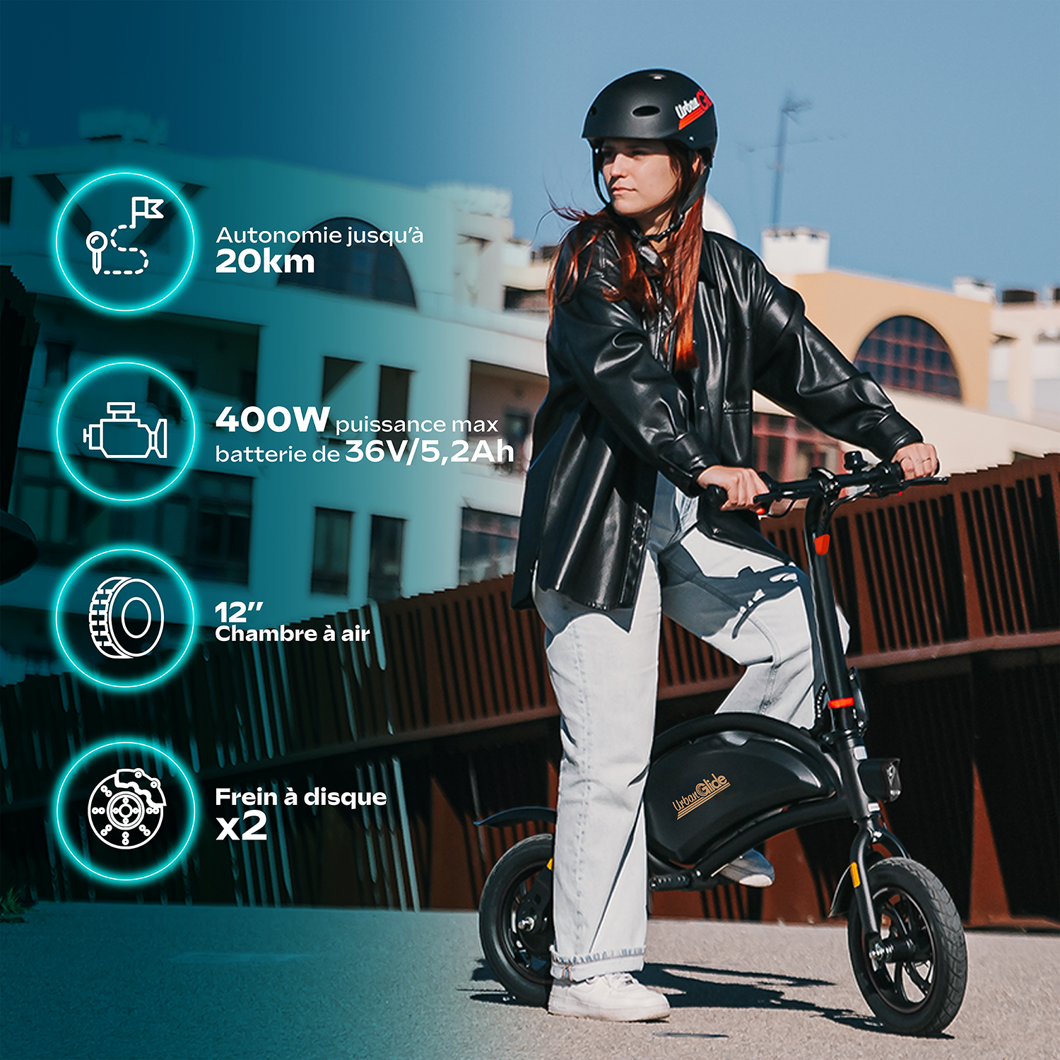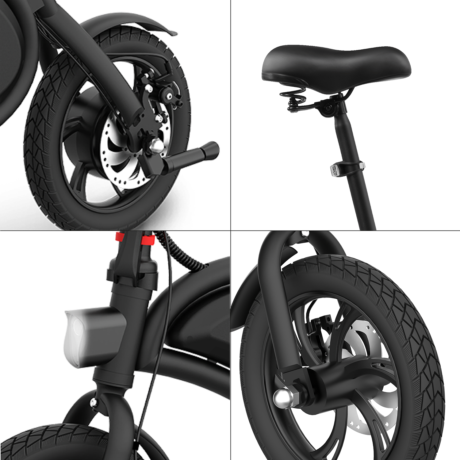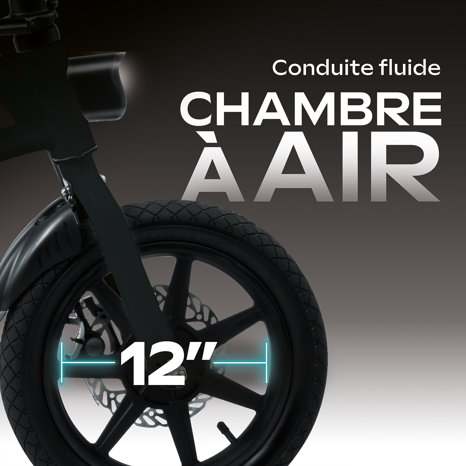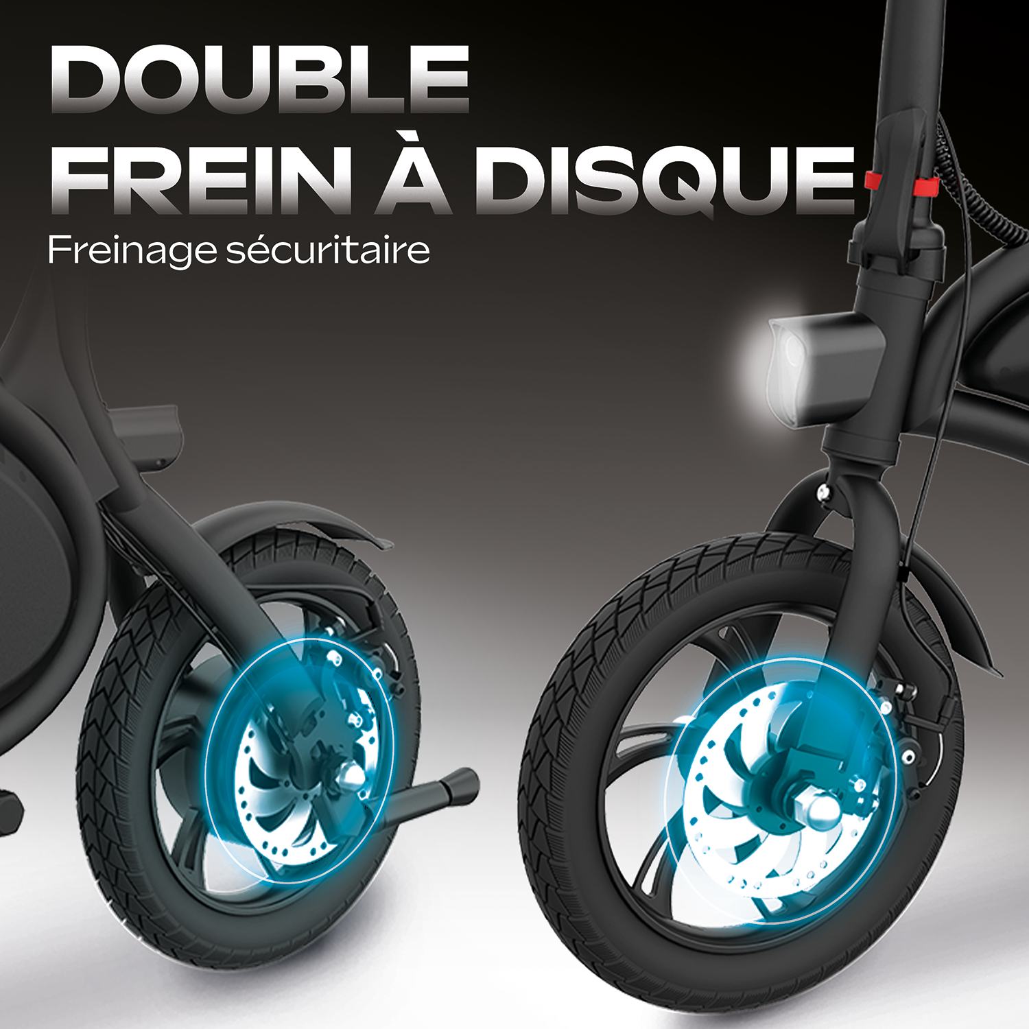 Équipée de roues de 12 pouces, d’un frein à disque arrière, et d’une batterie lithium 36V 6Ah, elle vous accompagne jusqu’à 18 km d’autonomie. Son système de pliage rapide, son siège ajustable, et ses accessoires intégrés (poignée de transport, repose-pieds, béquille) en font un allié idéal pour les trajets quotidiens.