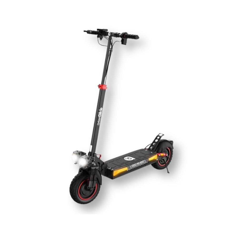 La Ecross Pro Boost allie robustesse et endurance grâce à son double moteur qui vous permettra de gagner en performance et dynamisme. Dotée d'une batterie 13Ah, de larges roues 10 pouces et de six suspensions avant et arrière, elle vous permettra de parcourir jusqu'à 50 km, avec un confort de conduite et une adherence tout terrain incomparable. Ses deux moteurs puissants de 800W vous permettront de monter facilement des pentes jusque 20°.