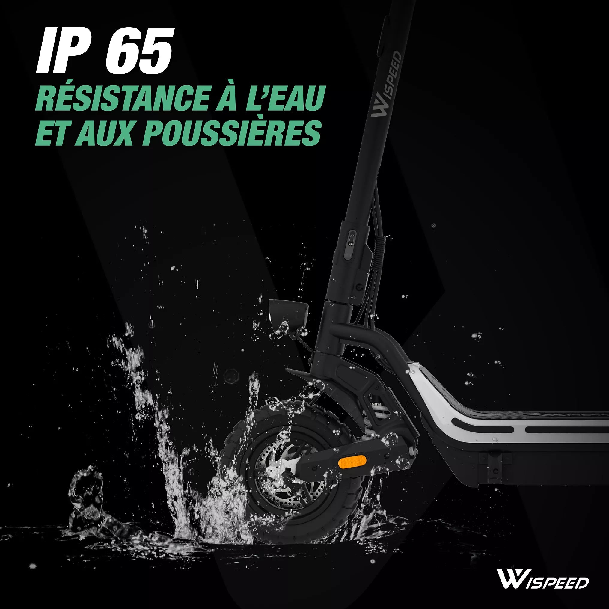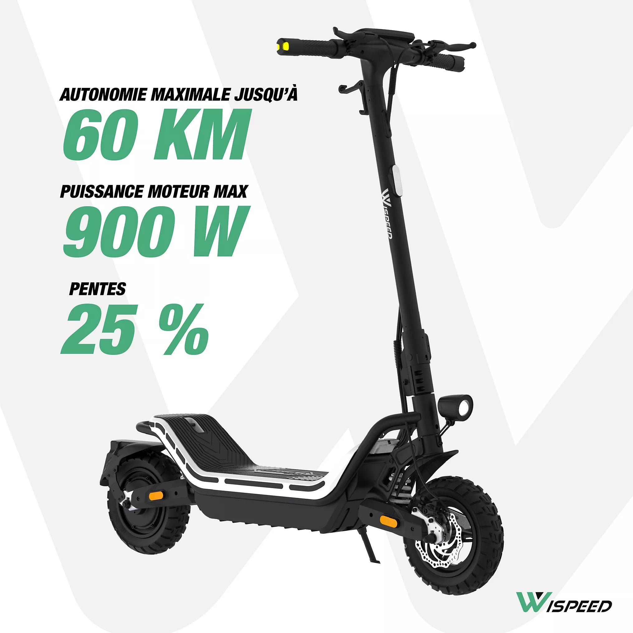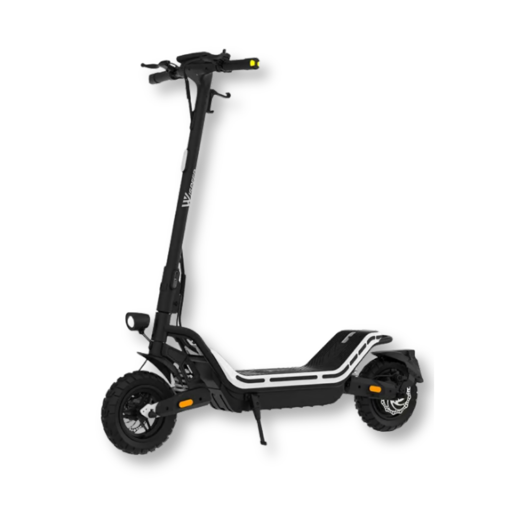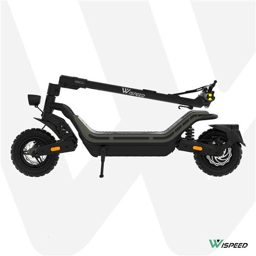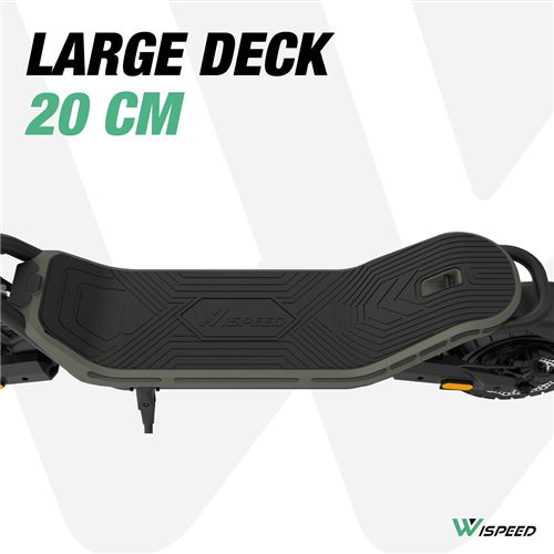The WISPEED SUVPILOT 480 electric scooter stands out for its superior comfort and ability to adapt to all terrains. With its wide 96 cm deck and 10'' Cross tires, it offers a stable and pleasant driving experience, enhanced by an adjustable dual suspension that effectively absorbs shocks. The large 96 cm stem is ideal for all body types, ensuring an optimal riding posture. In addition, the 7.4'' LED display allows for clear reading of essential information, while the four speed modes adapt to all needs, from pedestrian mode to maximum mode at 25 km/h.