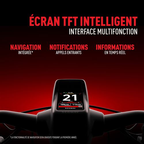 L’écran intégré de la GT3 E offre une fonction de navigation pratique, permettant de planifier vos itinéraires rapidement et en toute simplicité.