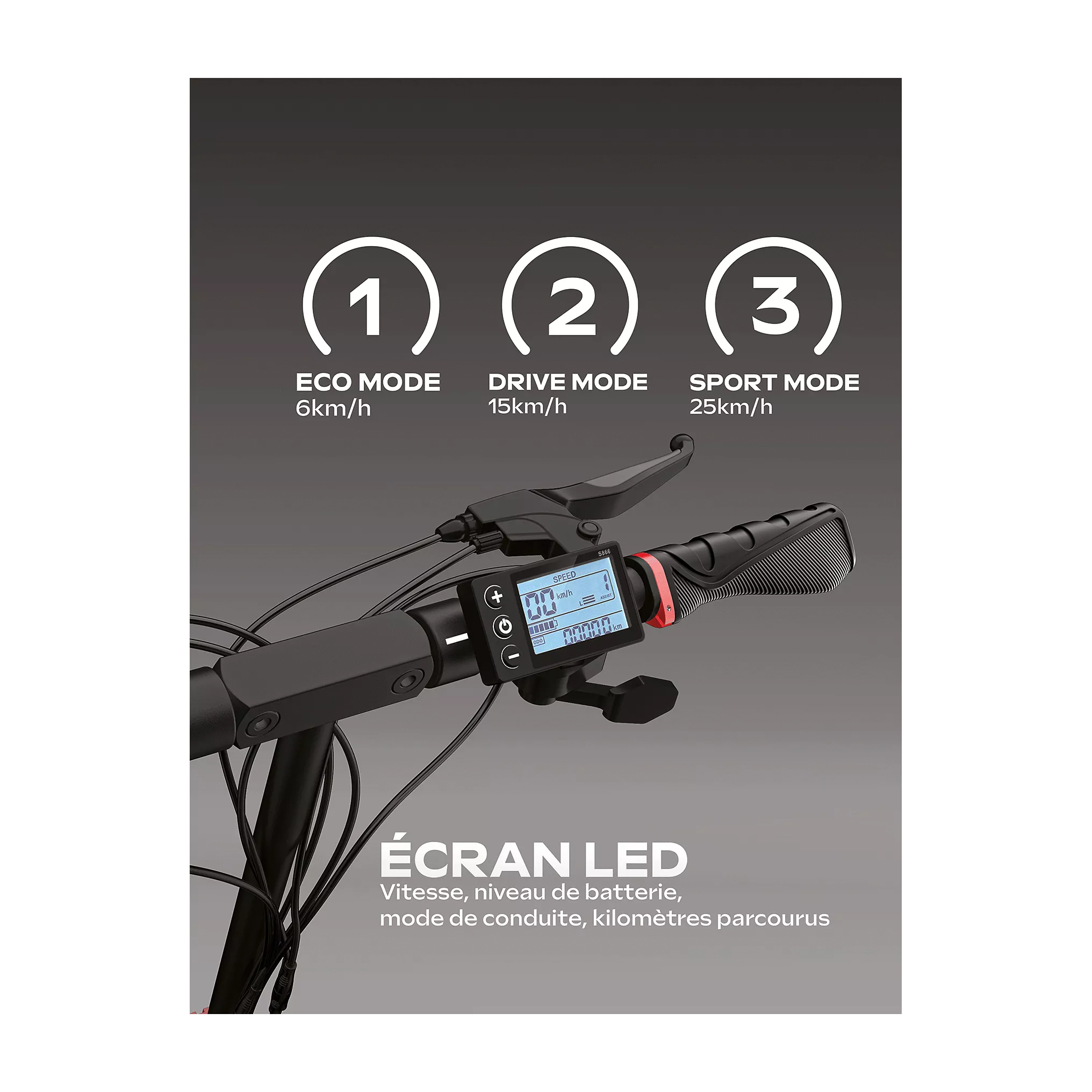 Vitesse maximale de 25 km/h conforme à la législation.