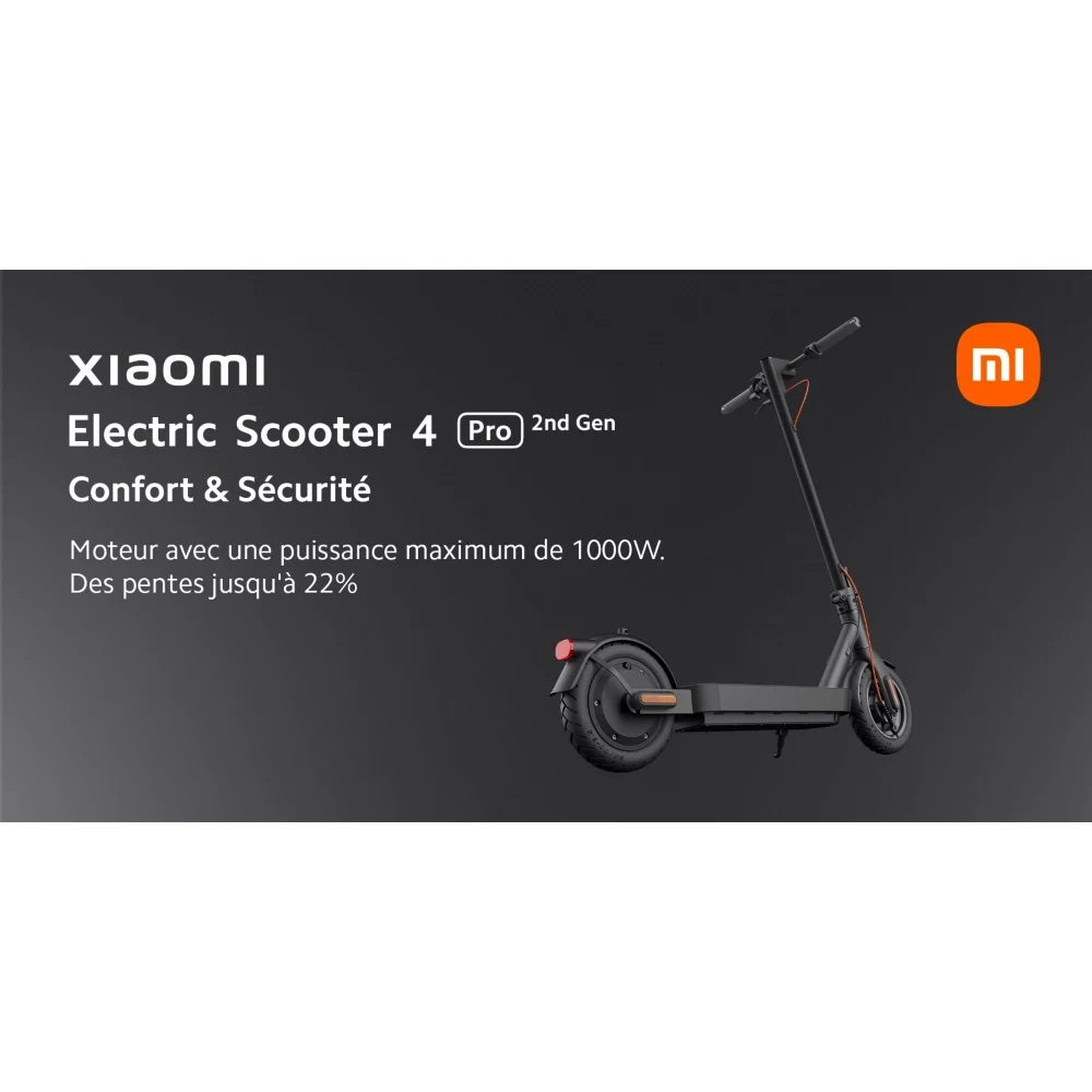 La trottinette électrique XIAOMI Scooter 4 Pro (2nd Gen) s’adresse aux adultes en quête d’un moyen de transport à la fois moderne et performant. Arborant un design élégant en coloris noir, ce modèle est doté d’un moteur de 400 W, permettant de gravir des pentes jusqu’à 22 % et d’atteindre une vitesse maximale de 25 km/h, tout en respectant la réglementation en vigueur sur la voie publique.